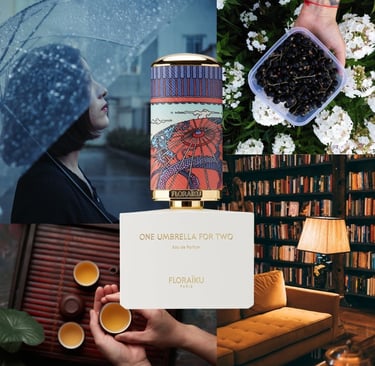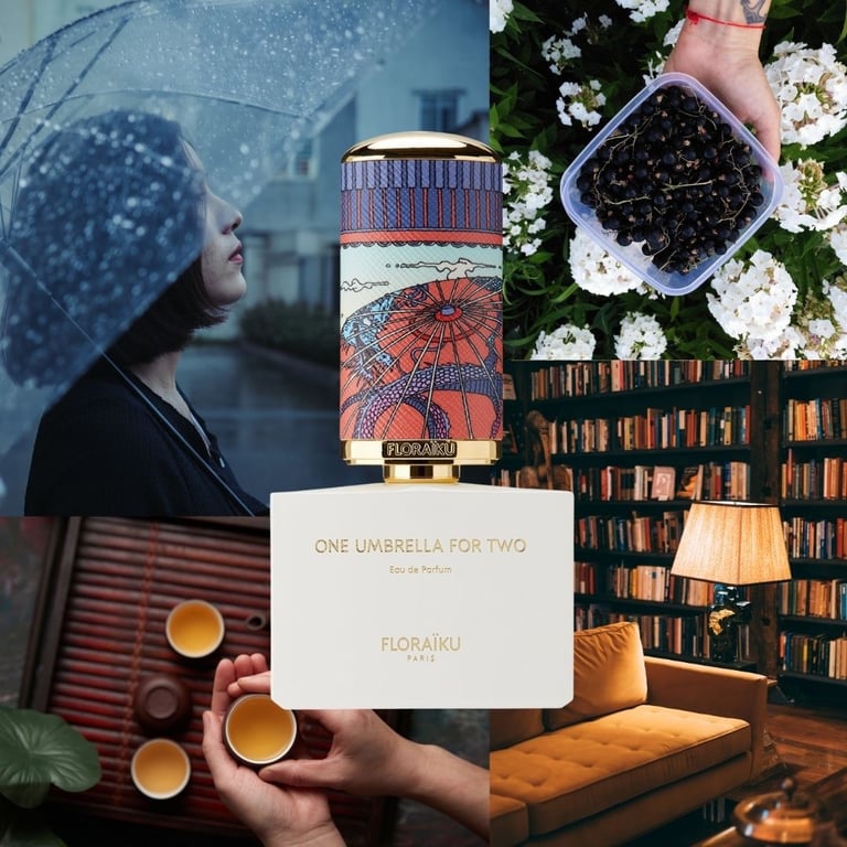 Floraiku One Umbrella Fro Two: jaukus pasivaikščiojimas lietuje po skėčiu ir puodelis šiltos mėlynių arbatos laukiantis namie.