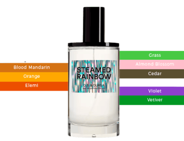 Kuriant šį kvapą buvo sugalvota panaudoti medžiagas, atitinkančias kiekvieną vaivorykštės spalvą (raudoną, oranžinę, geltoną, žalią, mėlyną, indigo ir violetinę), ir supinti jas į subtilų, drėgną, garuojančio oro pojūtį, kad gimtų lengvas, daugiaspalvis ir eteriškas kvapas.