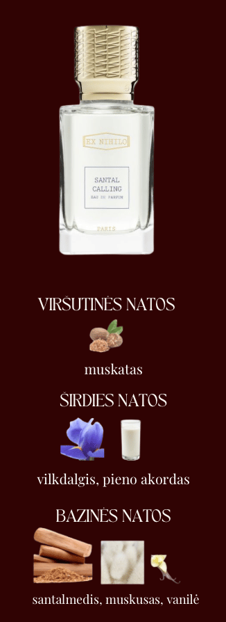 Po Le Labo Santal33, atsargiai žiūriu į kvepalus su šia nata, nes jie man kartais kvepia lyg rauginti agurkai. Tačiau Santal Calling santalmedis yra nuostabiai švelnus ir puikiai dera šioje kompozicijoje. Kvapas prabangus ir lengvą jį pamėgti.