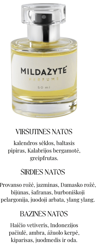 Taip pat, mano manymu, labai taiklus sprendimas – kvepalus pavadinti „Mildažytė“. Kažkur skaičiau, kad A. Mickevičius yra minėjęs: kad ir kokį pavadinimą sugalvos, žmonės vis tiek sakys „Mildažytės kvepalai“.