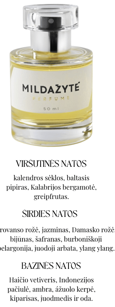 Mildažytė kvepalai mane maloniai nustebino. Ryški ir drąsi aromato pradžia iš karto užkabina, o pasiekus širdies natas norisi jį užuosti vėl ir vėl.