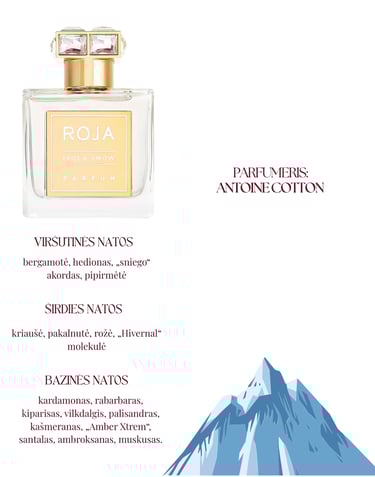 Kvapas, įkvėptas Alpių kraštovaizdžių ir žiemiškų kalnų vaizdų. Kompozicijos ašis „snaigės akordas“, perteikiantis sniego pojūtį.